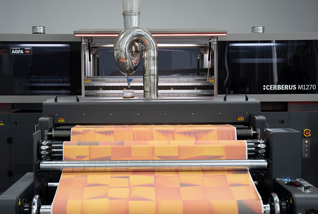 2023年為更好地滿足客戶個(gè)性化定制需求,特別是寬幅要求,引進(jìn)德國(guó)AGFA(阿克發(fā))工業(yè)數(shù)碼設(shè)備,產(chǎn)品無需制版,即可快速完成配色、調(diào)色、出樣、壓板與看樣,配合數(shù)碼凹印的匹配技術(shù),在凹版印刷機(jī)上可快速還原色彩。可以配合設(shè)計(jì)師做個(gè)性化定制,任何精細(xì)的圖形、插畫、線條,包括文本都可以變成高品質(zhì)花色,同時(shí)不受限于尺寸,還原最初始的美。